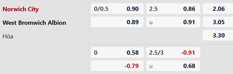 Thông tin tỷ lệ kèo Norwich vs West Brom: