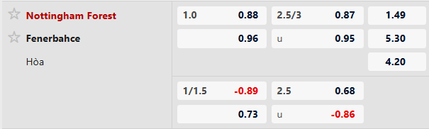 Thông tin tỷ lệ kèo Nottingham vs Fenerbahce:
