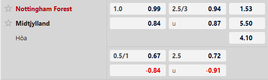 Thông tin tỷ lệ kèo Nottingham vs Midtjylland:
