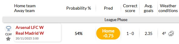 Dự đoán Nữ Arsenal vs Nữ Real Madrid: