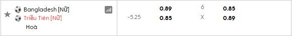 Thông tin tỷ lệ Nữ Bangladesh vs Nữ Triều Tiên: