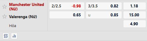 Nữ MU đang thể hiện phong độ ổn định trên thị trường cá cược khi thắng kèo ở 5/5 trận mở kèo gần nhất. Điều này cho thấy đội bóng chủ nhà không chỉ có sức mạnh về chất lượng đội hình mà còn đáng tin cậy trong mắt giới đầu tư. Trong khi đó, Nữ Valerenga chỉ thắng kèo 2/6 trận trước đó, thể hiện sự thiếu ổn định và khó tạo niềm tin khi theo cược. Với những dữ liệu này, Nữ MU được đánh giá cao hơn cả về chuyên môn lẫn kèo cược.
