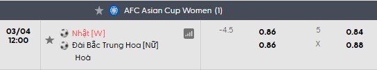 Soi kèo châu Á Nữ Nhật Bản vs Nữ Đài Bắc Trung Hoa:
