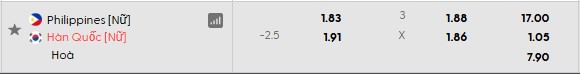 Thông tin tỷ lệ Nữ Philippines vs Nữ Hàn Quốc: