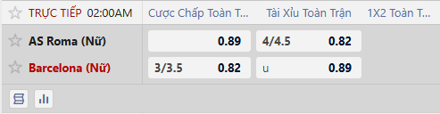 Thông tin tỷ lệ bóng đá Nữ Roma vs Nữ Barcelona:
