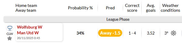 Nữ Wolfsburg sở hữu lợi thế sân nhà, nhưng không còn duy trì được sức mạnh vượt trội như các mùa trước. Trong khi đó, Nữ MU lại đang đạt phong độ tốt ở sân chơi châu Âu, tinh thần lên cao sau những chiến thắng quan trọng. Với lối đá chặt chẽ và phản công tốc độ, Nữ MU hoàn toàn đủ khả năng gây khó khăn cho Wolfsburg và thậm chí giành điểm tối đa nếu tận dụng tốt cơ hội.