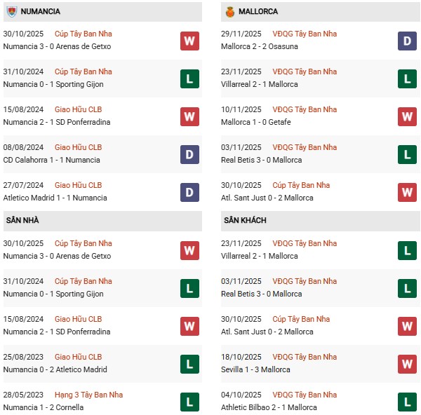 - Numancia thắng 2, thua 2 trong 10 trận gặp Mallorca gần đây.