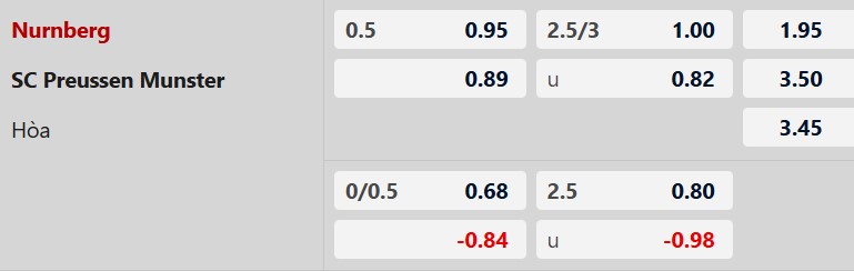 Soi kèo châu Á Nurnberg vs Preussen Munster: