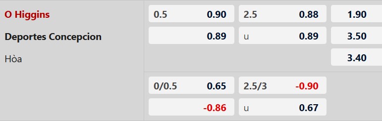 Thông tin tỷ lệ O Higgins vs Dep.Concepcion: