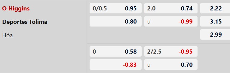 Thông tin tỷ lệ O Higgins vs Deportes Tolima: