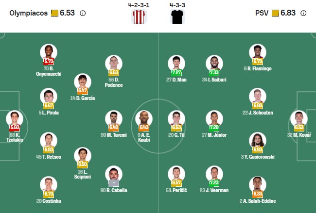 Đội hình dự kiến Olympiacos gặp PSV: