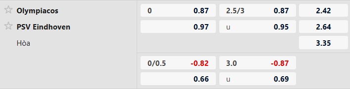 Nhận định kèo Olympiacos gặp PSV: