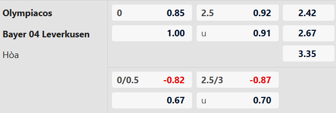 Thông tin tỷ lệ kèo Olympiakos vs Leverkusen: