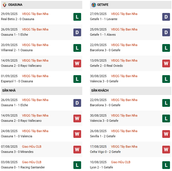 - Trên sân nhà, Osasuna thắng 3, thua 2 trước Getafe.
