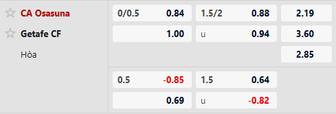 Thông tin kèo bóng đá Osasuna vs Getafe: