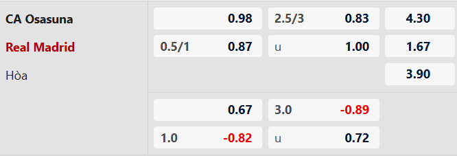 Thông tin tỷ lệ kèo bóng đá Osasuna vs Real Madrid: