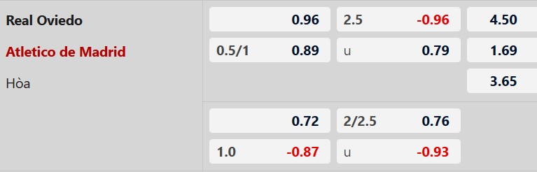 Soi kèo châu Á Oviedo vs Atletico Madrid:
