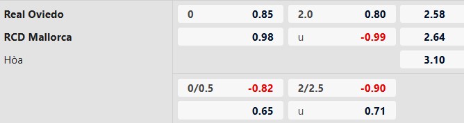 Thông tin tỷ lệ bóng đá Oviedo vs Mallorca: