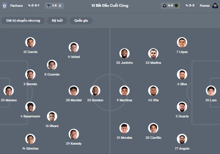 Đội hình dự kiến Pachuca vs Pumas UNAM: