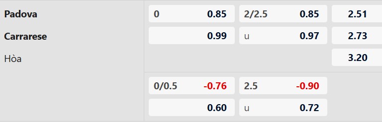 Soi kèo châu Á Padova vs Carrarese: