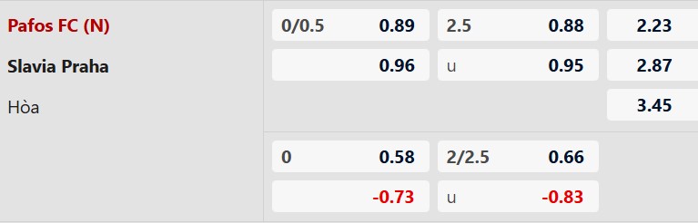 Thông tin tỷ lệ cược Pafos vs Slavia Praha: