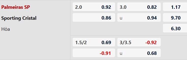 Soi kèo châu Á Palmeiras vs Sporting Cristal: