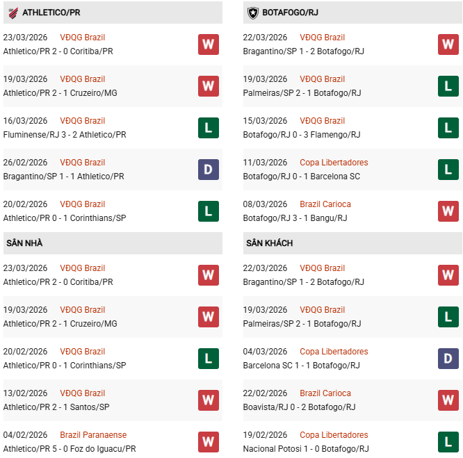 Xét về tương quan lực lượng, phong độ và lợi thế sân nhà, Atletico Paranaense rõ ràng nhỉnh hơn. Khi đội chủ nhà đã “vào phom” còn Botafogo vẫn chìm trong khủng hoảng, kịch bản về một chiến thắng dành cho Atletico Paranaense là rất dễ xảy ra.