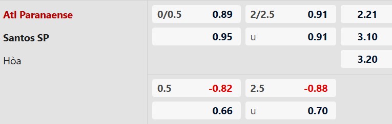 Thông tin tỷ lệ kèo Paranaense vs Santos: