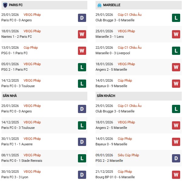 Marseille cần một chiến thắng trước Paris FC để quên đi thất bại đáng hổ thẹn trước Club Brugge khiến họ bị loại cay đắng ở Champions League mùa này. Do đó, nhiều khả năng OM sẽ ca khúc khải hoàn khi rời Paris.