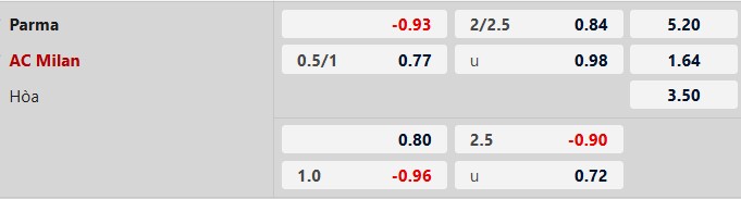 Thông tin tỷ lệ bóng đá Parma gặp AC Milan:
