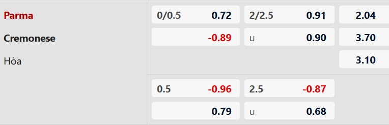 Thông tin tỷ lệ kèo Parma vs Cremonese:
