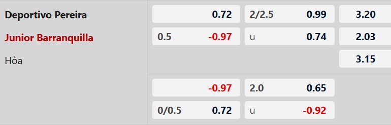 Soi kèo châu Á Pereira vs Junior Barranquilla: