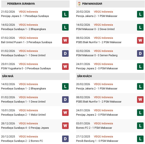 Thống kê phong độ Persebaya vs PSM Makassar: