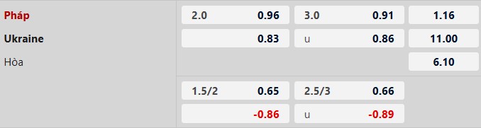 Thông tin tỷ lệ kèo bóng đá Pháp vs Ukraine: