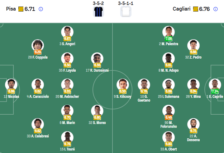 Đội hình dự kiến Pisa vs Cagliari: