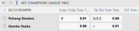 Thông tin tỷ lệ kèo Pohang Steelers vs Gamba Osaka: