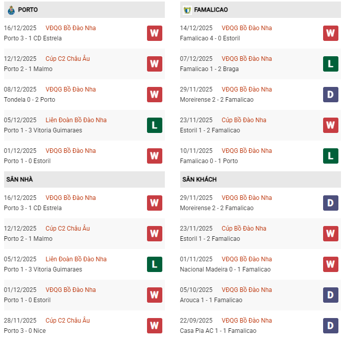 Đối đầu trực tiếp: Trong lần gặp nhau gần nhất vào tháng 11/2025, Porto đã đánh bại Famalicao ngay trên sân khách với tỷ số 1-0.