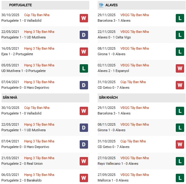 Alaves hiện đang thi đấu tại La Liga, sở hữu đội hình có chất lượng vượt trội về mọi mặt so với Portugalete. Phong độ của họ trong 10 trận gần nhất không quá ấn tượng với 3 chiến thắng, 2 hòa và 5 thất bại. Màn trình diễn sân khách của Alaves cũng chưa thực sự tốt khi chỉ thắng 2, hòa 2 và thua 6 trong 10 trận xa nhà gần đây.