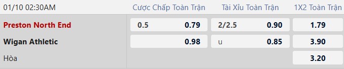 Thông tin tỷ lệ bóng đá Preston vs Wigan: