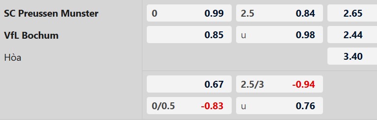 Soi kèo châu Á Preussen Munster vs Bochum: