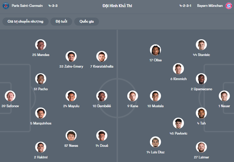 Đội hình dự kiến PSG vs Bayern Munich: