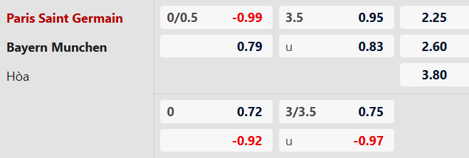 Thông tin tỷ lệ kèo bóng đá PSG vs Bayern Munich:
