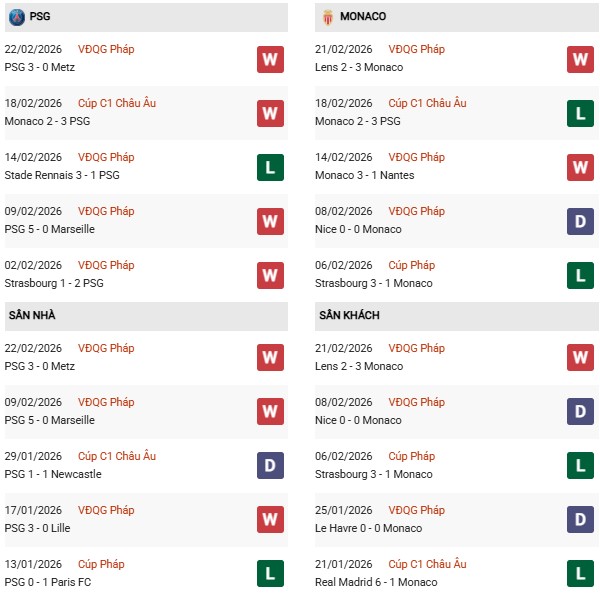 Cần nhấn mạnh thêm rằng, PSG bất bại trong 5 lần đối đầu gần nhất với Monaco tại Paris và chưa từng thua một trận đấu loại trực tiếp nào trước đội bóng Công quốc trong thế kỷ này.