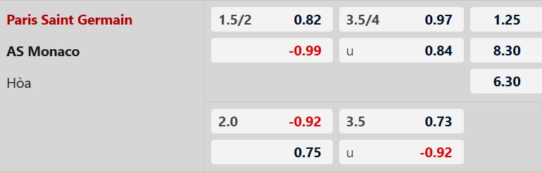 Thông tin tỷ lệ kèo bóng đá PSG vs Monaco: