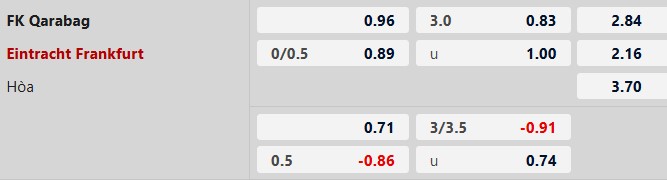 Thông tin tỷ lệ cược Qarabag vs Frankfurt: