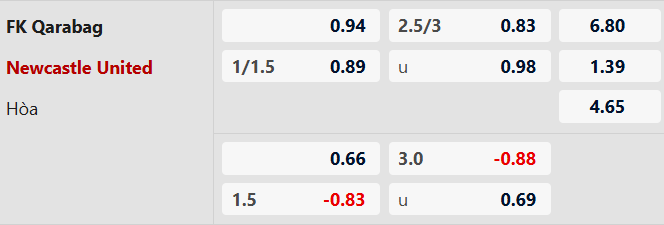 Nhận định kèo tài xỉu Qarabag vs Newcastle: