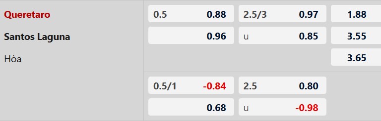 Soi kèo châu Á Queretaro vs Santos Laguna: