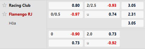 Thông tin tỷ lệ kèo Racing Club vs Flamengo: