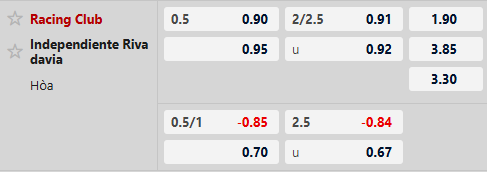 Chủ nhà Racing Club được đánh giá cao hơn với mức kèo 1/2 bàn. Tuy nhiên, trước một Rivadavia đang thi đấu tương đối khó chịu gần đây, Racing Club nhiều khả năng khó tạo dựng được thế trận dễ dàng.