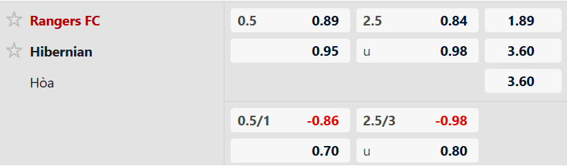 Thông tin tỷ lệ kèo Rangers vs Hibernian: